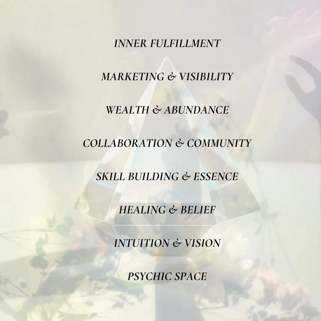 The reality is that creativity is not just a flimsy dream. It’s something that’s invested in with time, care, and patience. We’ll look into places where we see a need for specific growth (like, honing a musical instrument, a particular writing skill, your vocal fluency, or another skill related to your practice) and explore how we can invest more intentional time and energy there. We’ll also explore the essence we want to call forth (visual, spiritual, aesthetic, energetic) without putting yourself in a box.